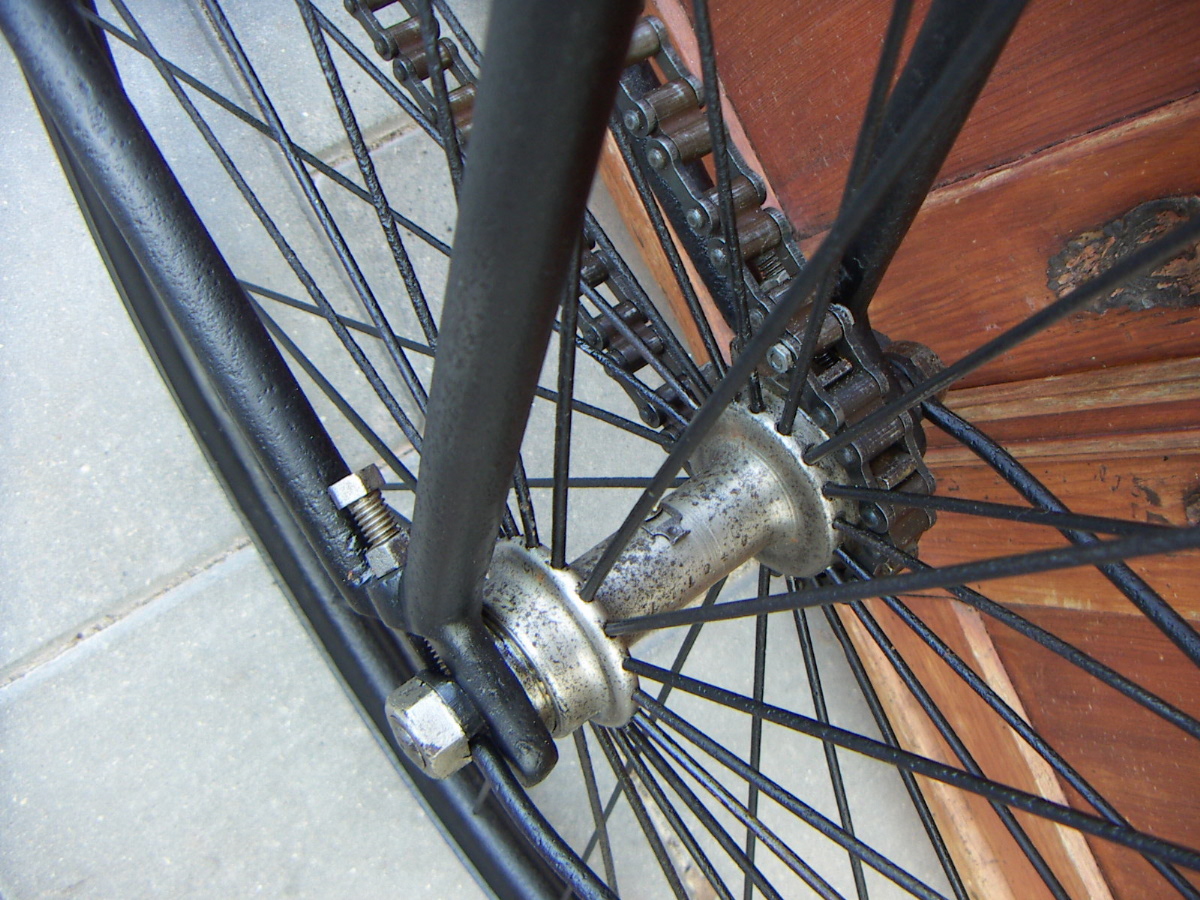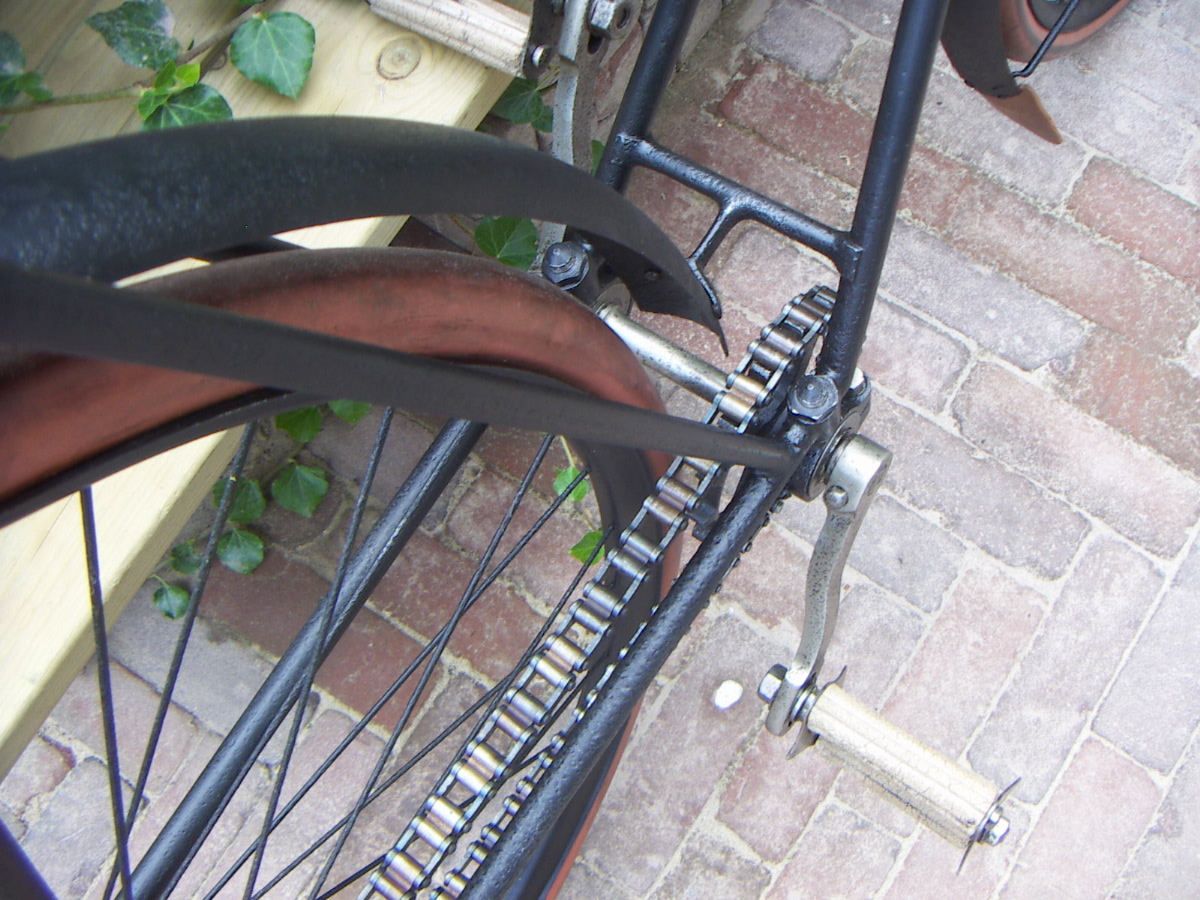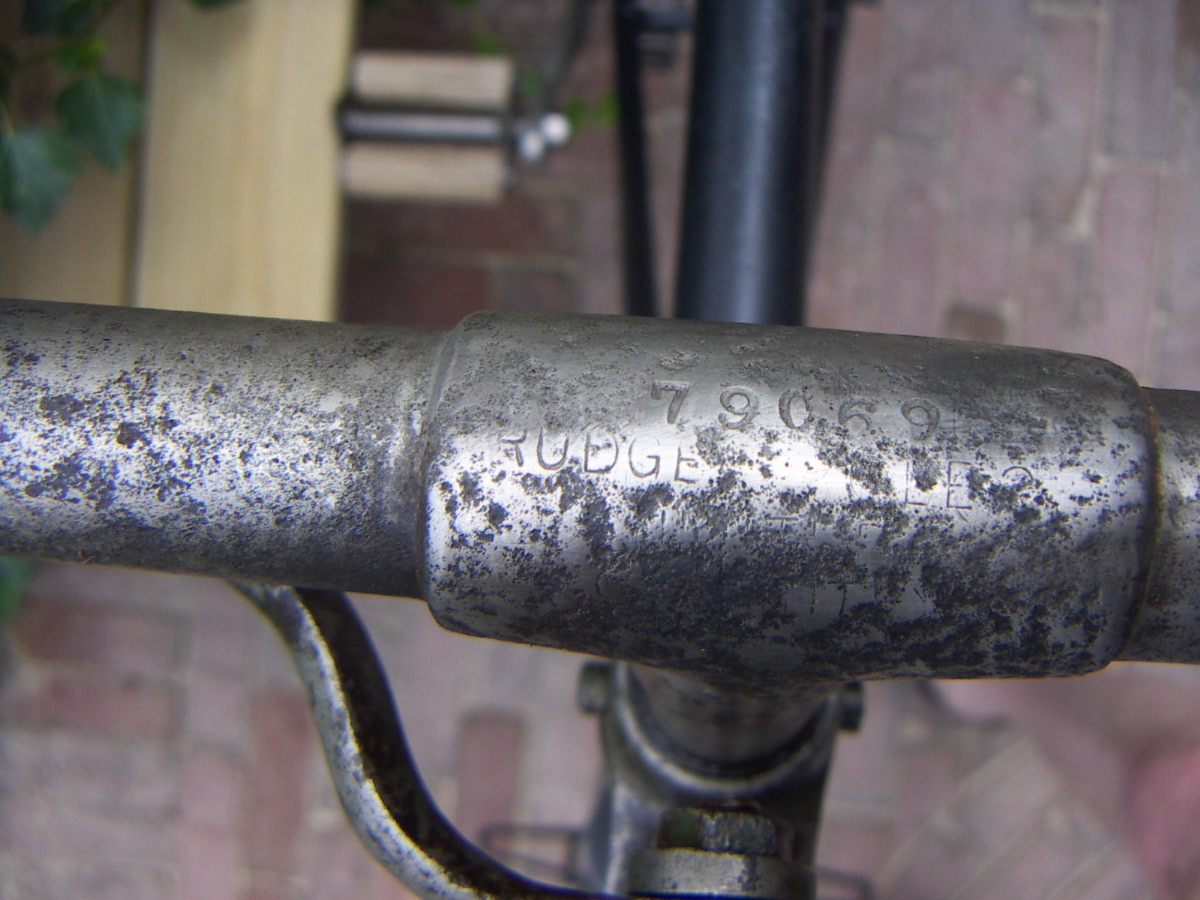 This Rudge bicyclette model H has a rare double tube frame. The bike is incredibly heavy, in fact it makes me think of a light motorcycle! The model is not unique for Rudge; we know of some French factories that built the same frame; these might be copies of the original Rudge design. This bike has socket steering (without balls). Rudge also made a version with pivot steering.